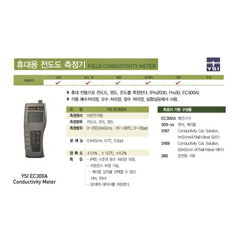 YSI-EC300A, 스마트계측기, 전도도측정기EC300A, 염분측정EC300A, 전도도ysiEC300A, 염분측정기EC300A, 염도측정기EC300A, 전도도측정EC300A, 해수측정EC300A, 바닷물측정EC300A, ysi전도도측정기, 전도도측정기