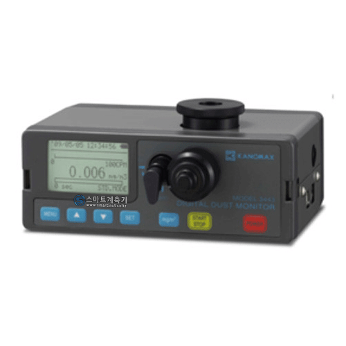 KANOMAX의 3443모델은 고감도 디지털 분진계로써 산란광의 강, 약이 분진 질량농도에 비례하는 원리는 이용한 분진 상대 농도계 입니다.