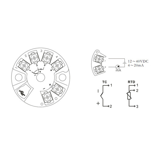 ST500 온도 트랜스미터 써머커플, PT100 센서 호환, 4-20mA 출력, 헤드타입