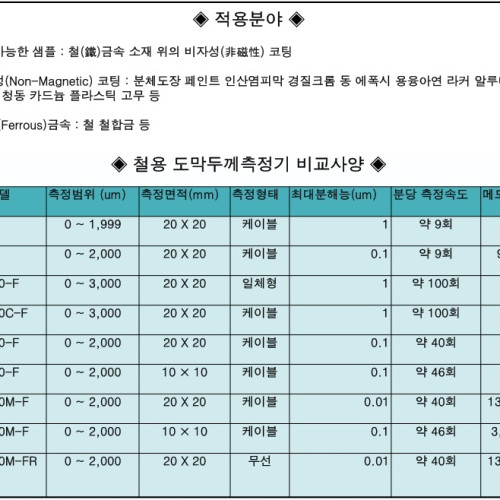 ▶철용 도막두께측정기 비교사양
